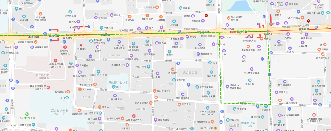 (2)??空军c:夾河高中(大彭鎮(zhèn))、大彭醫(yī)院、霸王山水泥廠、十八屯、徐州誠遠眼耳鼻喉醫(yī)院、雨潤新城、火花農貿市場、生物工程學院北門、奎山散熱器公司、徐醫(yī)附院華豐分院、出入境辦理中心、小康人家、段南新村、段莊、礦務局、工人醫(yī)院、市二院、浦發(fā)銀行、彭城飯店、中央百大(單邊)。