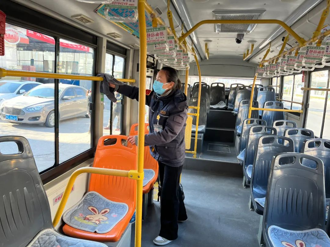王海芬跑的這條線路,穿過數(shù)條主干道,經(jīng)過工人醫(yī)院、兒童醫(yī)院等一個個醫(yī)療中心。“這幾天有一位乘客,兒子剛動完手術,他每天要到醫(yī)院送飯。每次上車,我們都會互相寒暄幾句,心里也暖暖的。”為了自己的健康也為了他人的健康,王海芬利用休停時間把座椅、扶手等地方用消毒液進行擦拭,每一趟的間隙開窗通風,保證車內空氣流動,她在車內配備了藥箱,里面有口罩等防疫物資以備乘客不時之需。
