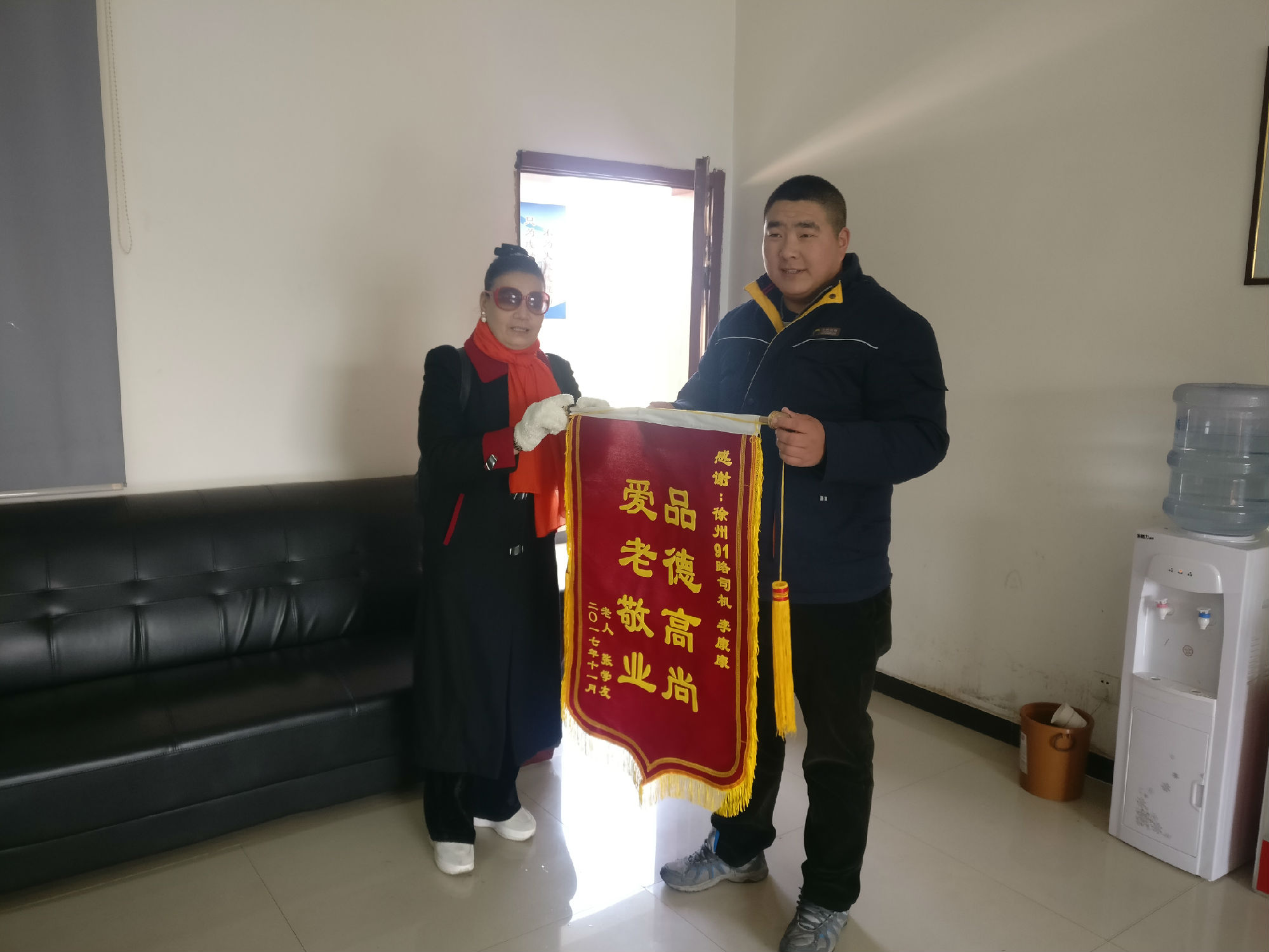 如果你是一線陽光,你是否照亮了一分黑暗。11月21日,李康康正在執(zhí)行末班車的任務(wù),夜晚比較寒冷,車上乘客也比較少。即將到達(dá)終點(diǎn)站時(shí),車上僅剩一位年近70的張女士,李師傅看到她神情慌張看著窗外。經(jīng)過詢問,得知張女士剛搬到新城區(qū)住不久,迷路了。李康康考慮到張女士年齡較大,于是就把想送張女士回家的想法向線路長及公司做出了匯報(bào)。經(jīng)批準(zhǔn)后,他開車將張女士送回了家。事后,張女士為了表達(dá)謝意,為李師傅送來一面錦旗。
