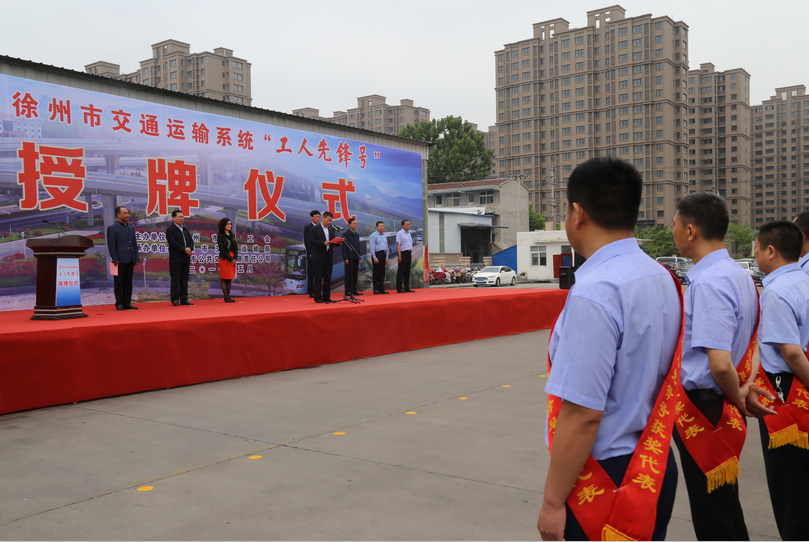 5月8日上午10點(diǎn),徐州市總工會在郭莊路停保場隆重舉行徐州市交通運(yùn)輸系統(tǒng)“工人先鋒號”授牌儀式。徐州市人大副主任、市總工會主席束志明,徐州市副市長趙立群,市文明辦主任沈麗,市交通運(yùn)輸局局長蔡前鋒,市總工會副主席劉洪印、副主席潘華,市交通運(yùn)輸局工會主席王培河以及公司董事長、總經(jīng)理杜紅軍等領(lǐng)導(dǎo)出席了授牌儀式。來自公交公司、汽車客運(yùn)總站等交通運(yùn)輸行業(yè)的300余名員工參加了授牌大會。