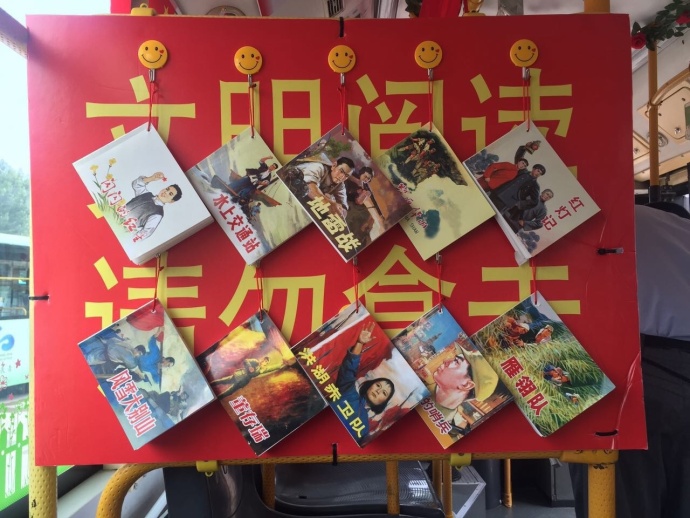 11路286車駕駛員曹瑞國,是一名老黨員,每逢大小節(jié)日,他都會自掏腰包提前購買一些小禮品,送給當(dāng)天乘車的市民。今年為慶祝黨的生日,曹瑞國布置了特色車廂:在車廂掛100面紅旗,在車窗上張貼英雄人物事跡海報(bào),尤其是車廂里的抗日小人書讀書角贏得了乘客贊譽(yù)。