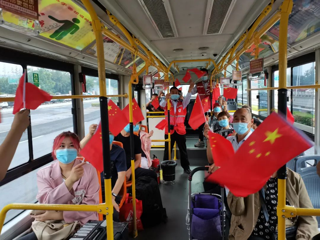 志愿者們走進(jìn)公交車廂,現(xiàn)場(chǎng)與乘客們互動(dòng),通過(guò)提問(wèn)節(jié)日和防疫小知識(shí),獎(jiǎng)勵(lì)口罩、紅旗、鑰匙環(huán)等小禮物,并與市民乘客們共唱《我和我的祖國(guó)》,熱鬧歡慶的氣氛感染了整個(gè)車廂,彰顯了“奉獻(xiàn)、友愛(ài)、互助、進(jìn)步”的志愿精神。