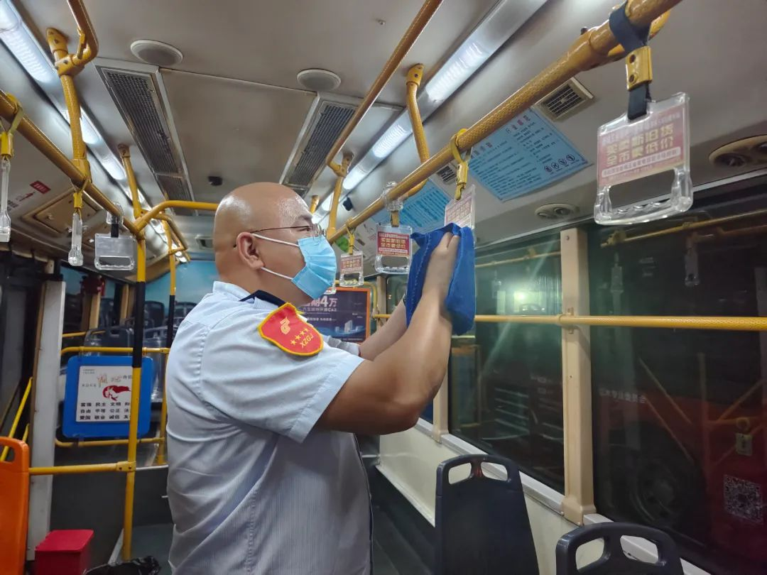 氣溫逐漸上升,陸續(xù)到了中午交接班時(shí)間,上、下午班駕駛員一起打掃車輛衛(wèi)生,并為車輛消毒,地板、扶手、座椅,不放過(guò)任何一處死角,只為給市民乘客提供更安全、舒適的乘車環(huán)境。
