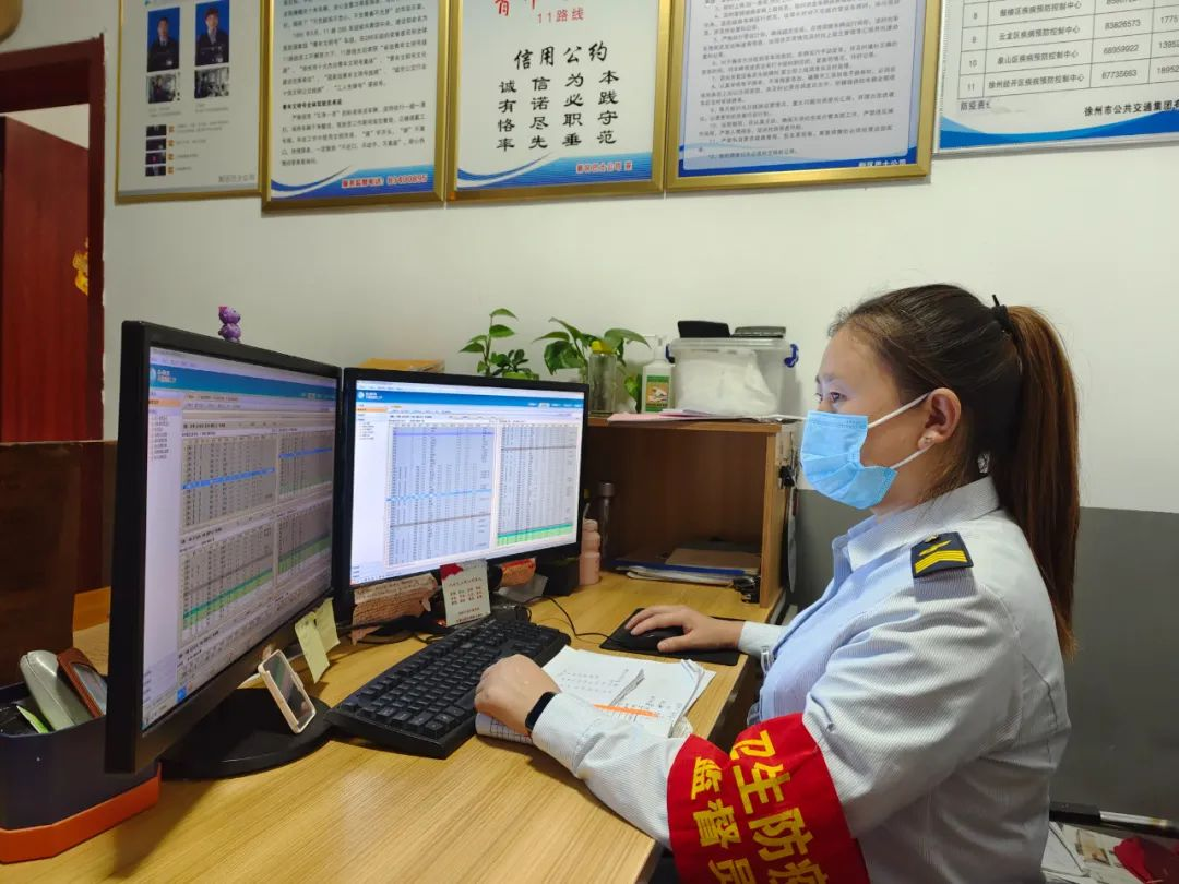 天還未亮,19路調(diào)度室里燈火通明,調(diào)度員黃靜已經(jīng)打開(kāi)電腦開(kāi)始了一天的工作,駕駛員陸續(xù)到達(dá),車隊(duì)運(yùn)管員鄒晶一邊叮囑著駕駛員安全注意事項(xiàng),一邊對(duì)其進(jìn)行酒精測(cè)試,一切井井有條,忙而不亂。首班車駕駛員紀(jì)彤仔細(xì)檢查車況、消毒、通風(fēng)等情況,車上、車下絲毫不敢疏忽,做好出車前的準(zhǔn)備。